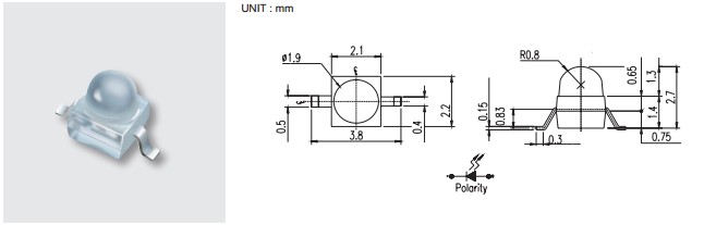 | Product | Size (LxWxHmm) | Color | λd (nm)/CIE(x,y) | IVMin./Typ. (mcd) | IVMax. (mcd) | VF Min. (V) | VF Typ. (V) | VF Max. (V) | I F (mA) |